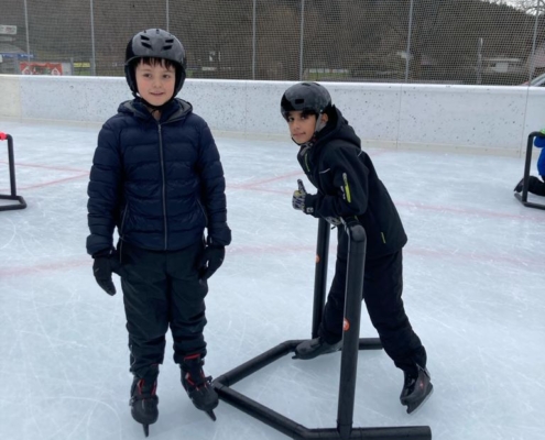 Die Kinder sind gleich auf das Eis, die einen mit Hilfsmittel, die anderen haben es ohne geschafft 😊 Es kam zu keinen größeren Unfällen. Dazwischen wurde die Jause ausgepackt, Kakao oder Tee getrunken und die Kinder haben sich etwas erholt. Die Kinder haben gut aufeinander geschaut und sich gegenseitig geholfen. Natürlich stand der Spaß an 1. Stelle und ich denke das hatten auch alle 😄 am Schluss hat Aurelia aus der 4. Klasse zur Musik was vorgeführt.”